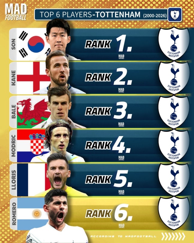 21세기 토트넘 홋스퍼 최고의 선수 6명. 매드풋볼