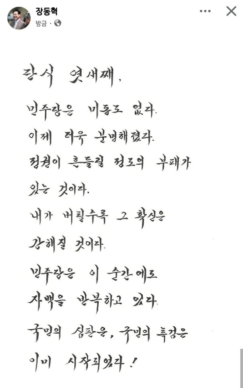 국힘당 장동혁 페북 업 ㄷㄷㄷ