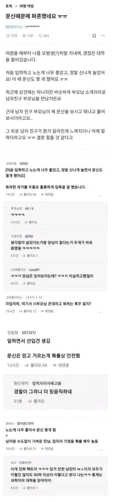결혼 전에 알게 된 게 다행인 듯