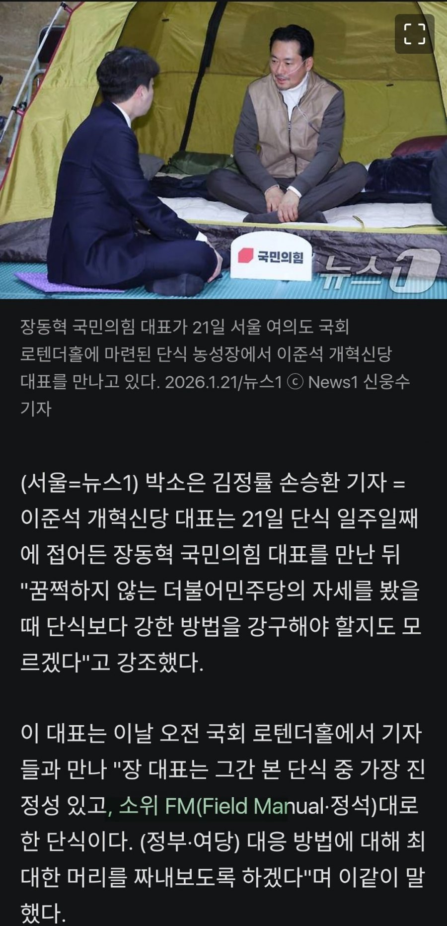 준서기, 장동혁 FM 단식 ㅋㅋ