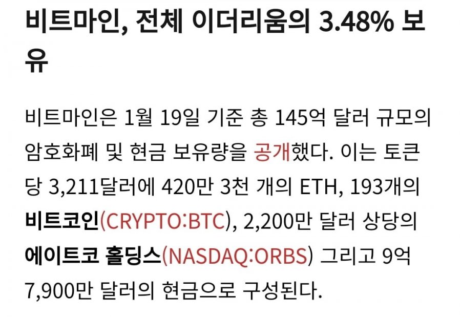 비트마인 전체 ETH 3.48% 보유