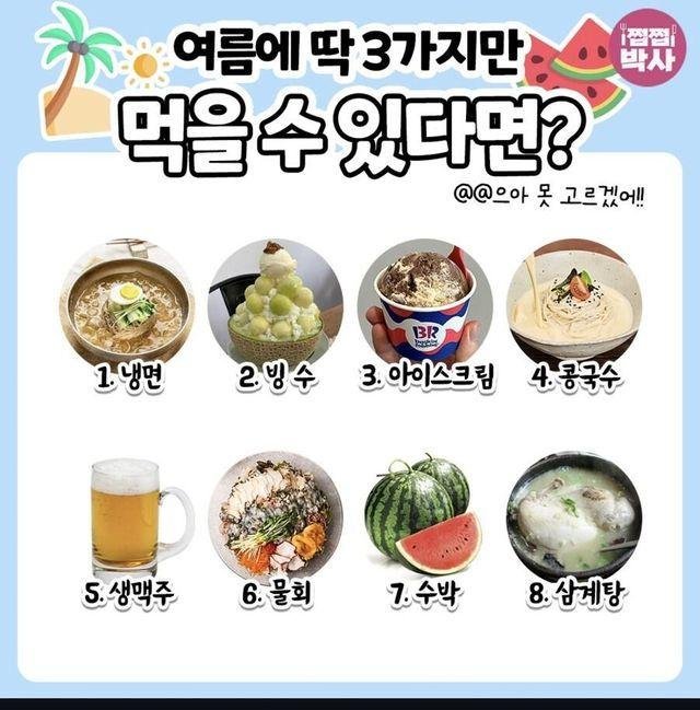 딱 세 가지만 먹을 수 있다면? ㄷㄷ