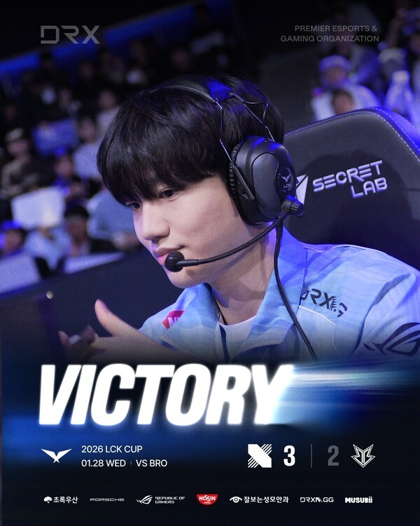 DRX는 28일 서울 치지직 LoL PARK에서 열린 2026 LCK컵 그룹 배틀 21경기 브리온과의 경기에서 풀세트 접전 끝에 3-2로 이겼다.